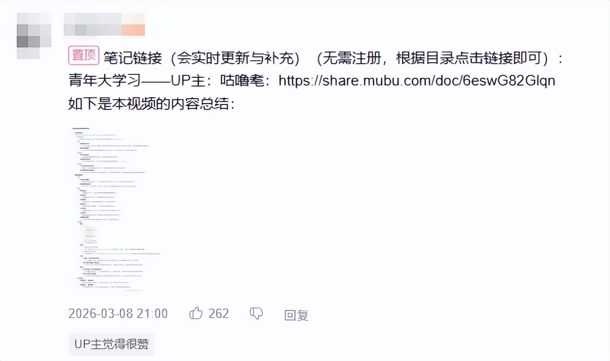 在这些视频的评论区中,既会刷新出许多课代表,把视频中的内容总结成文字版的笔记,供网友们时刻复习;