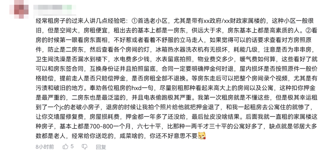 当年轻人跟着视频把上述问题弄个半懂不懂后正式踏入职场,租房的事就该拿出来讨论一番。耄耋会告诉你,你得先了解主要的房源渠道有哪些,接着搞懂什么是押一付一,物业水电之类又要怎么算,更是得避雷黑心中介与各类串串房。无良房东看完教程直接尿了几滴,大喊求你别打破信息差。