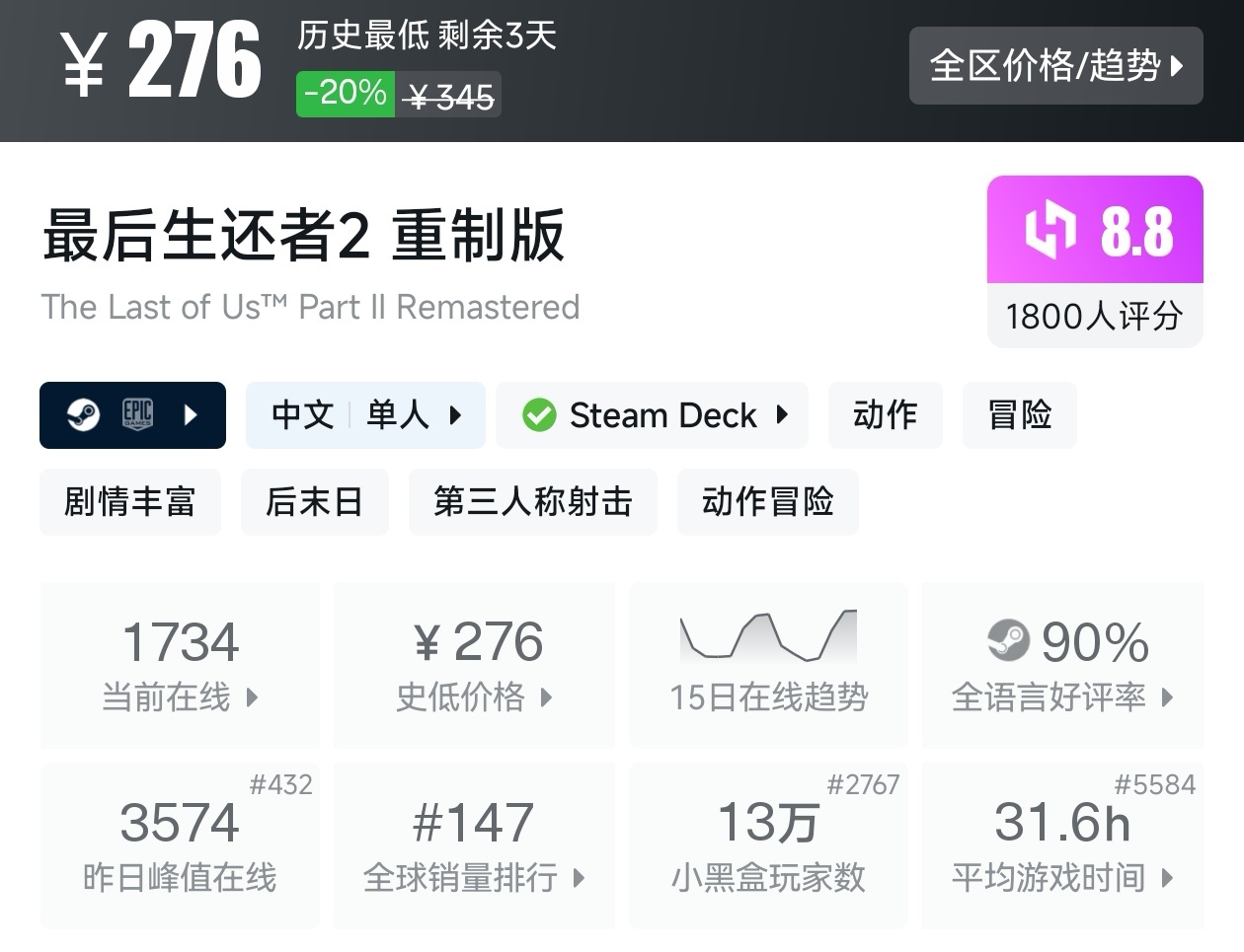 大家好,最近这不是已经春促,当然,既然是大促,就有大厂参与折扣,索尼旗下的游戏就开启了折扣,除了剑星,全场都是史低,不过剑星本身也算索尼旗下游戏里面比较便宜的游戏,甚至有几款游戏都已经3折或者4折,100出头也能体验,接下来我将为各位进行一个汇总,希望我的汇总,能够帮助各位盒友挑选心仪的游戏。