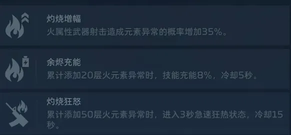 手持该武器时,自身造成的火焰伤害增加33%,队友造成的火焰伤害增加6%。