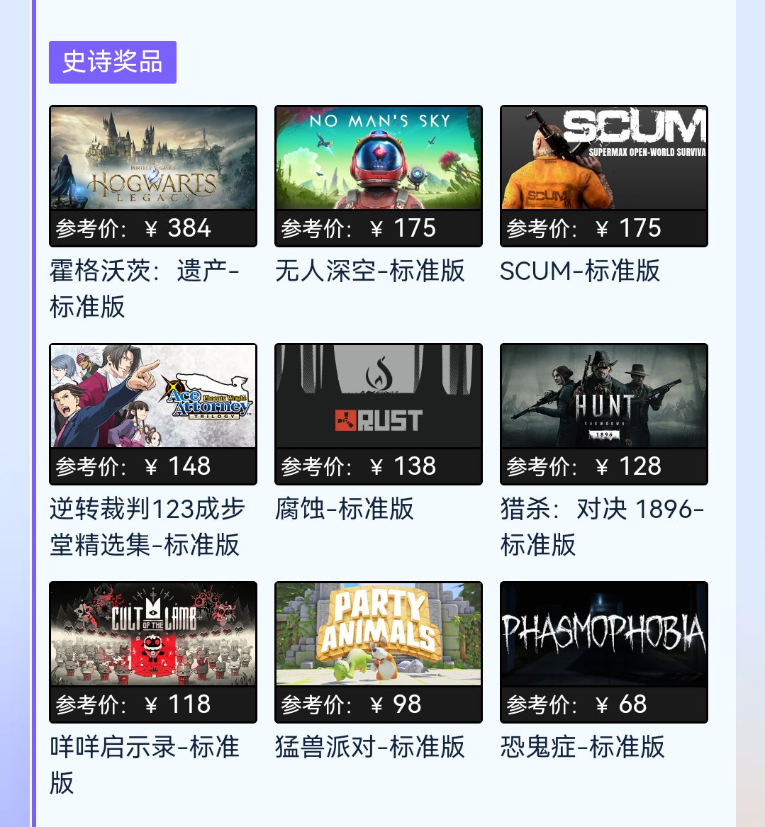 4.每個盒彈對應一件獎池內的獎品,中獎100%;本活動獎池獎品種類有限且隨機,您可能會抽取到重複遊戲獎品,請您理性購買。