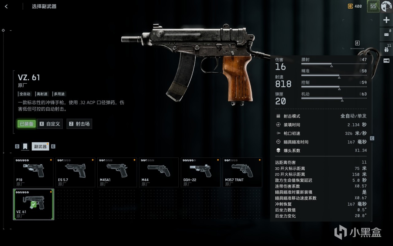 恰好,制作组推出了一款非常好用的副武器来很好地填补了这样的定位,那就是vz.61蝎式冲锋枪。