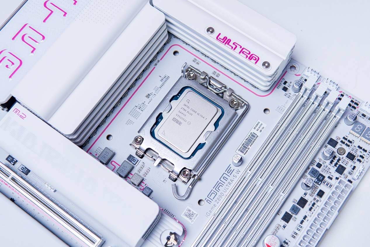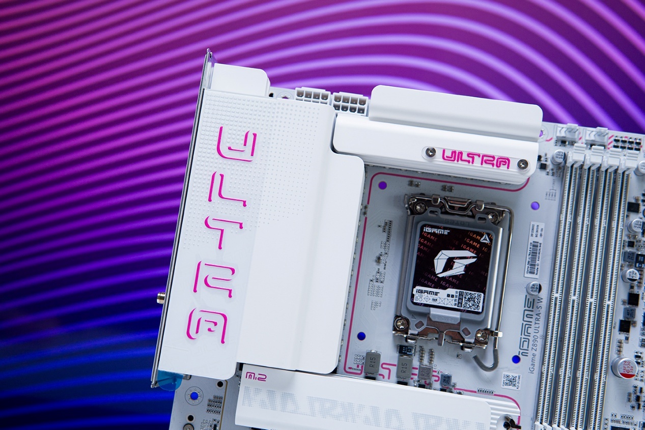 七彩虹iGame Z890 ULTRA-S W V20外观设计还是非常亮眼的,白色PCB板+白化接口+白色散热马甲+洋红色ULTRA字样涂装,整体显得精致且非常有活力。
