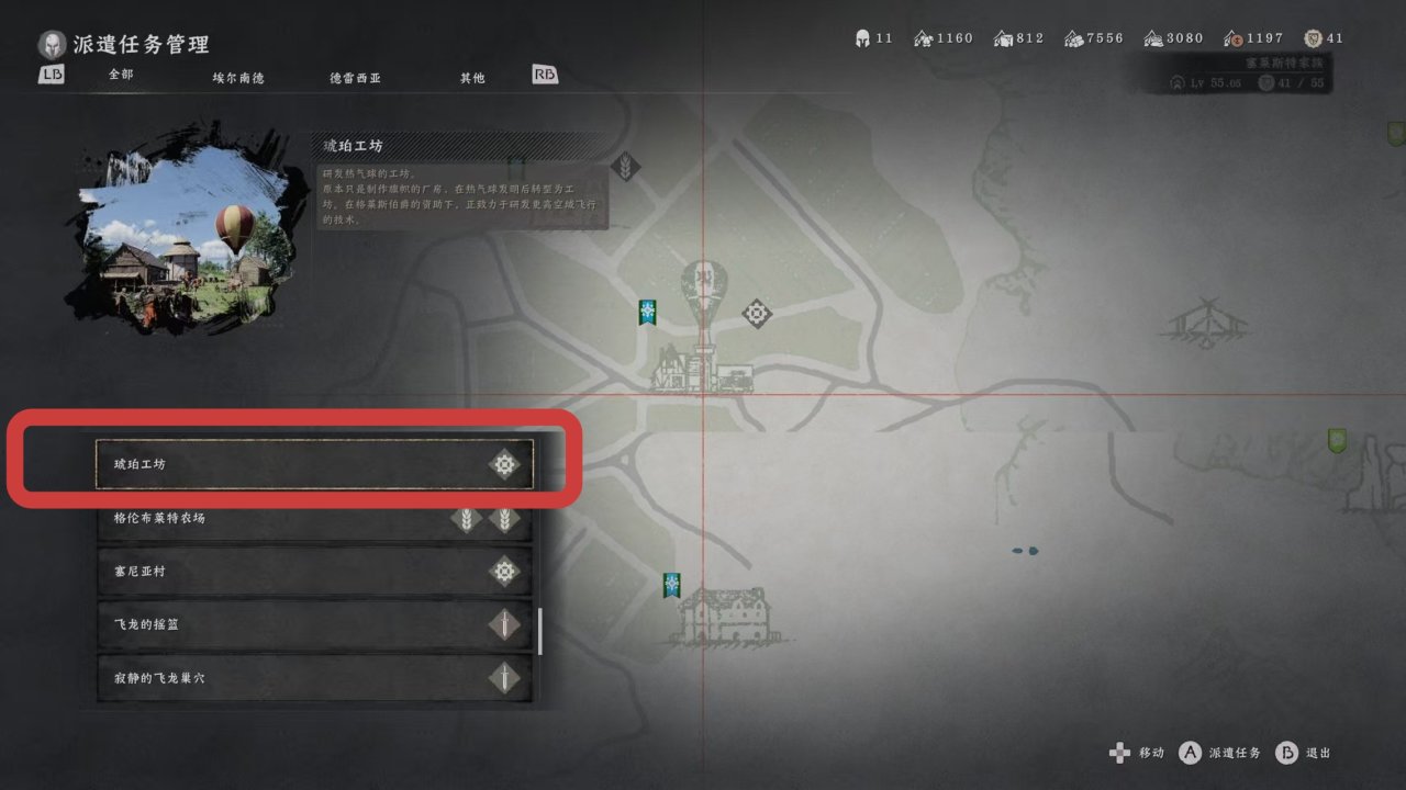 在其中找到“琥珀工坊”,可以看到右邊有個類似齒輪的標誌,這就代表必須要有一個帶有這個齒輪標誌的灰鬃參與,如果沒有,那就得繼續做傳聞找回灰鬃