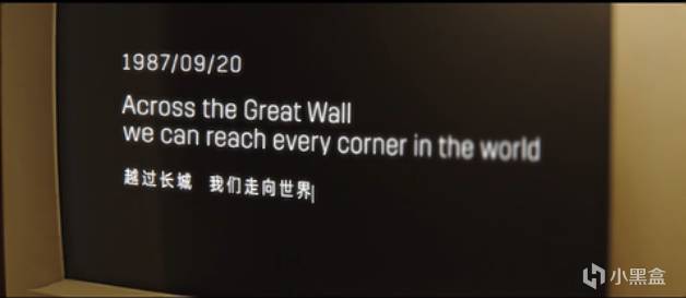 "Across the Great Wall we can reach every corner in the world." (越過長城,走向世界。)