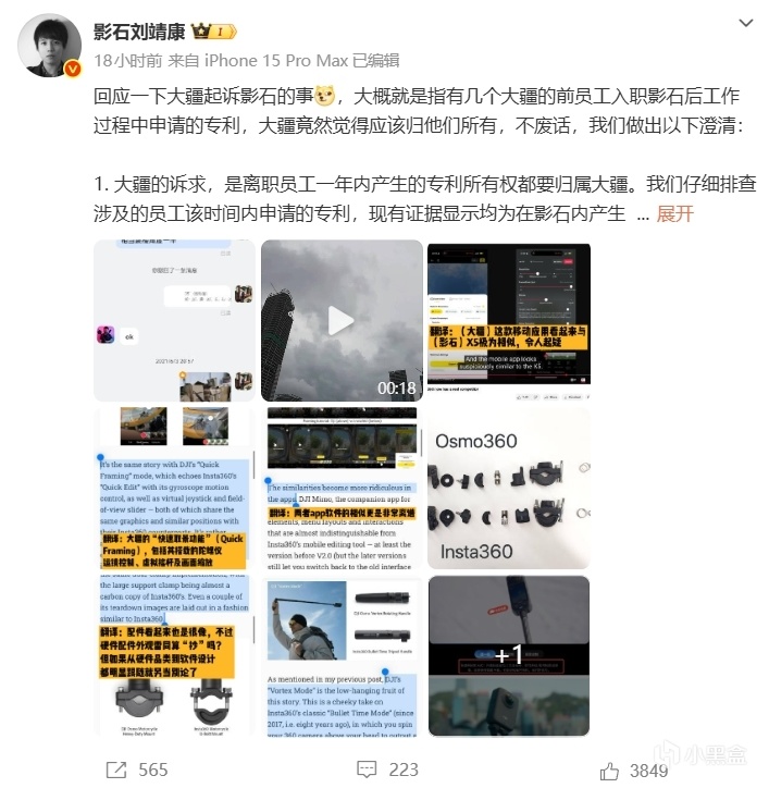 随后创始人刘靖康直接在社媒平台发文,详细回应了此次起诉,全盘否认大疆的指控。