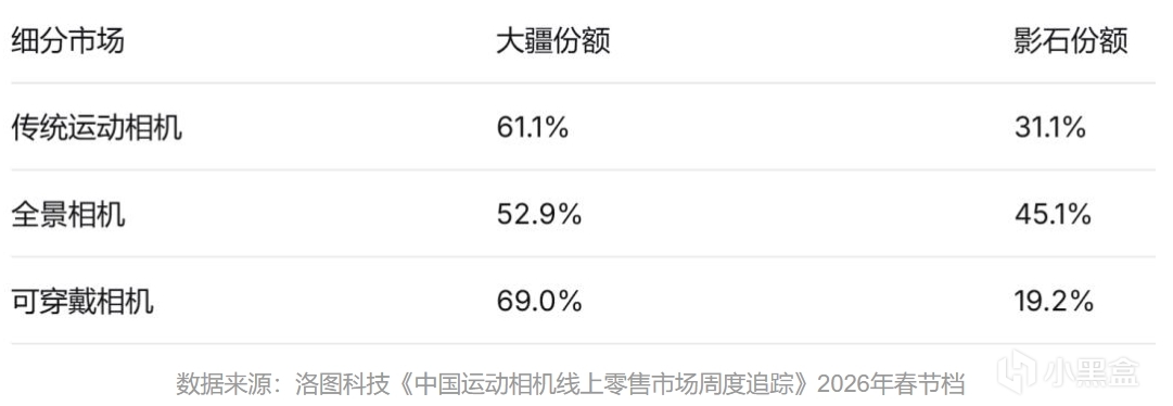 其中大疆以1040万台、62.4%的出货量市场份额位居全球市场首位,影石以超过340万台的出货量紧随其后,而曾经的行业巨头GoPro则在两家中国厂商的夹击下,已溅不起一点水花。