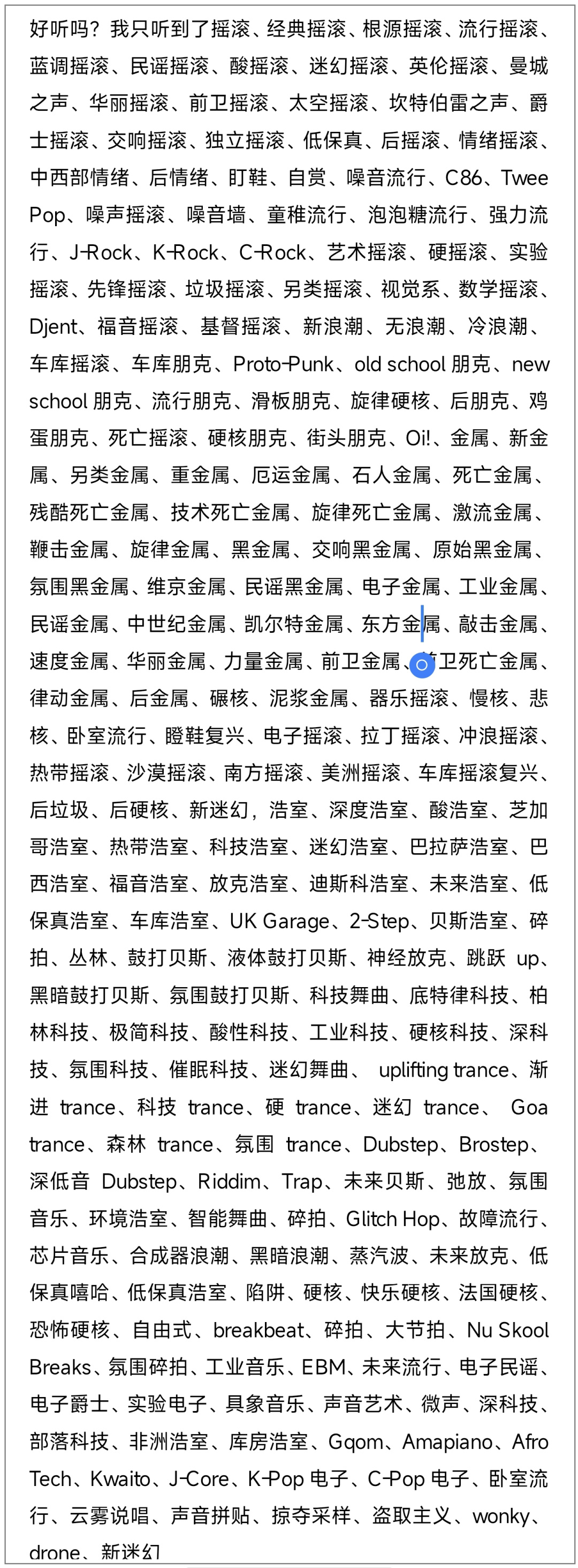 我这里还有几百道菜名,啊不对是音乐类型还没有报出来。为了防止你们举报我水字数,我决定把它们打包成图片,一次性管饱。
