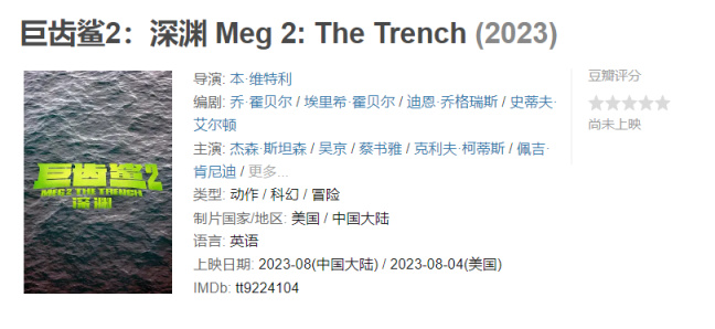 在这个暑假即将上映的《巨齿鲨2:深渊》是由本·维特利执导,吴京、杰森·斯坦森主演,蔡书雅、克利夫·柯蒂斯、佩吉·肯尼迪、斯凯勒·塞缪尔斯、西耶娜·盖尔利、塞尔吉奥·佩里斯·门切塔等参演的电影,影片将于 8 月 4 日登陆北美院线,并有望全球同步上映:
