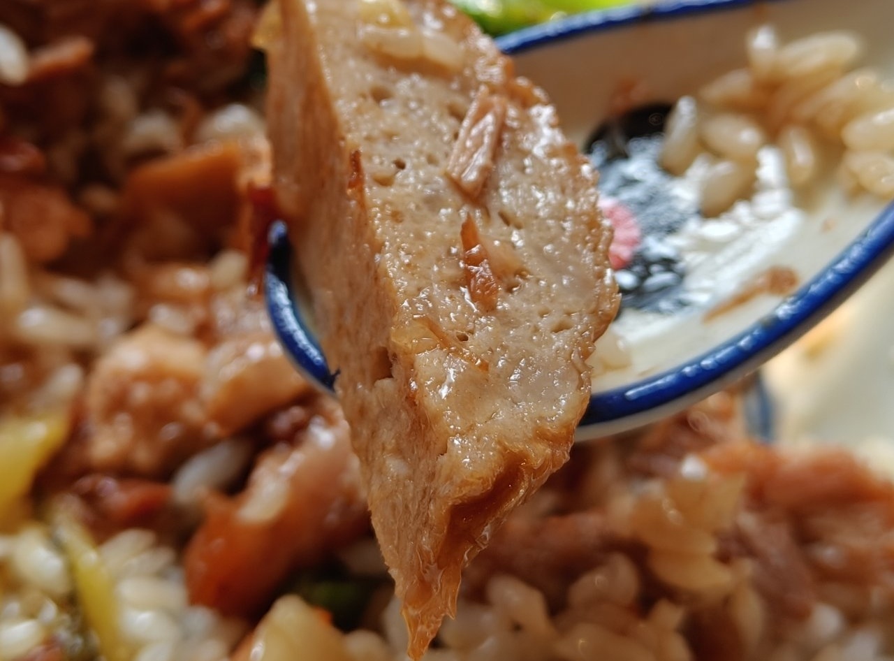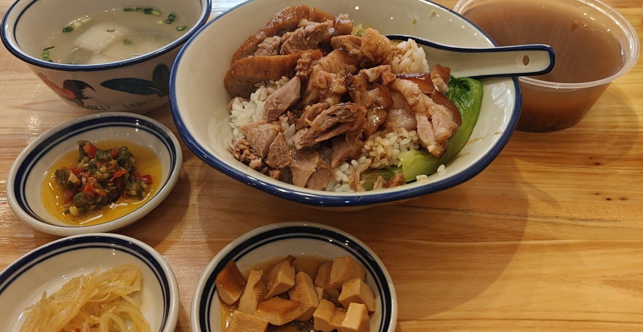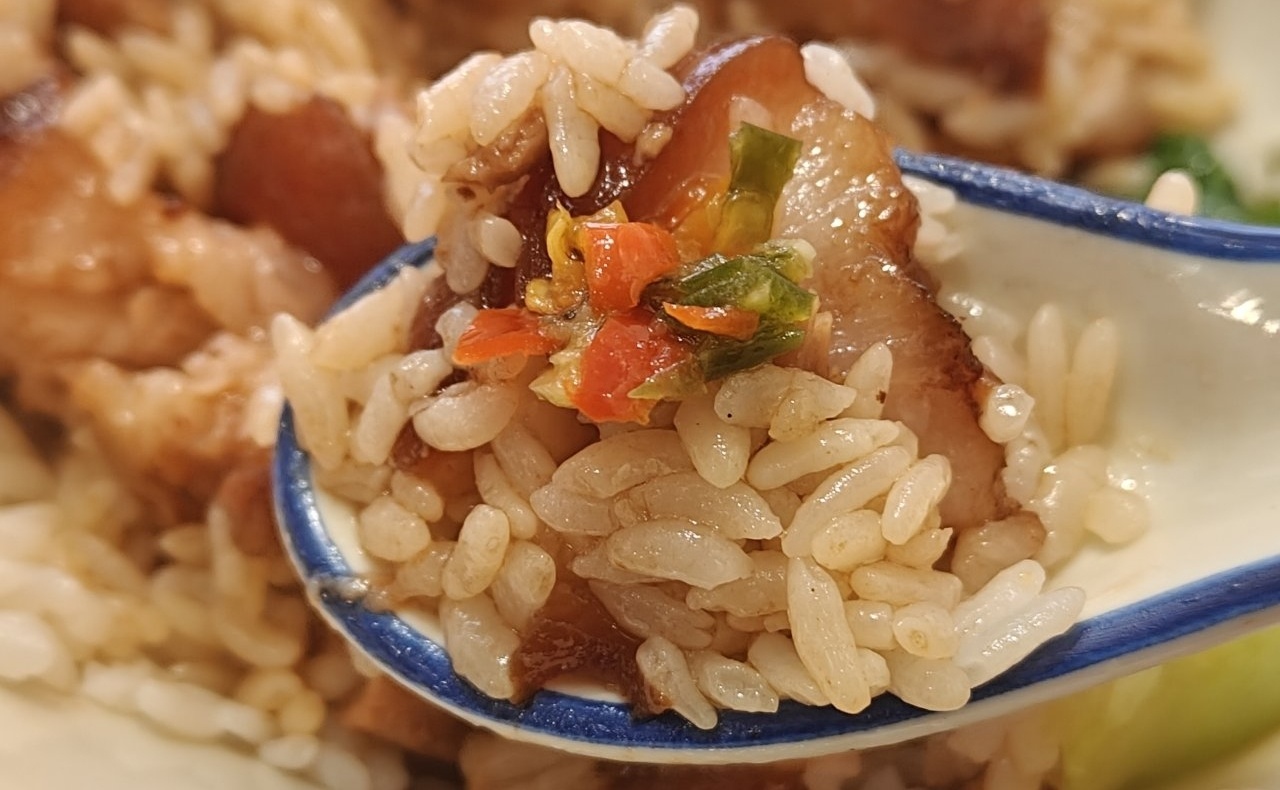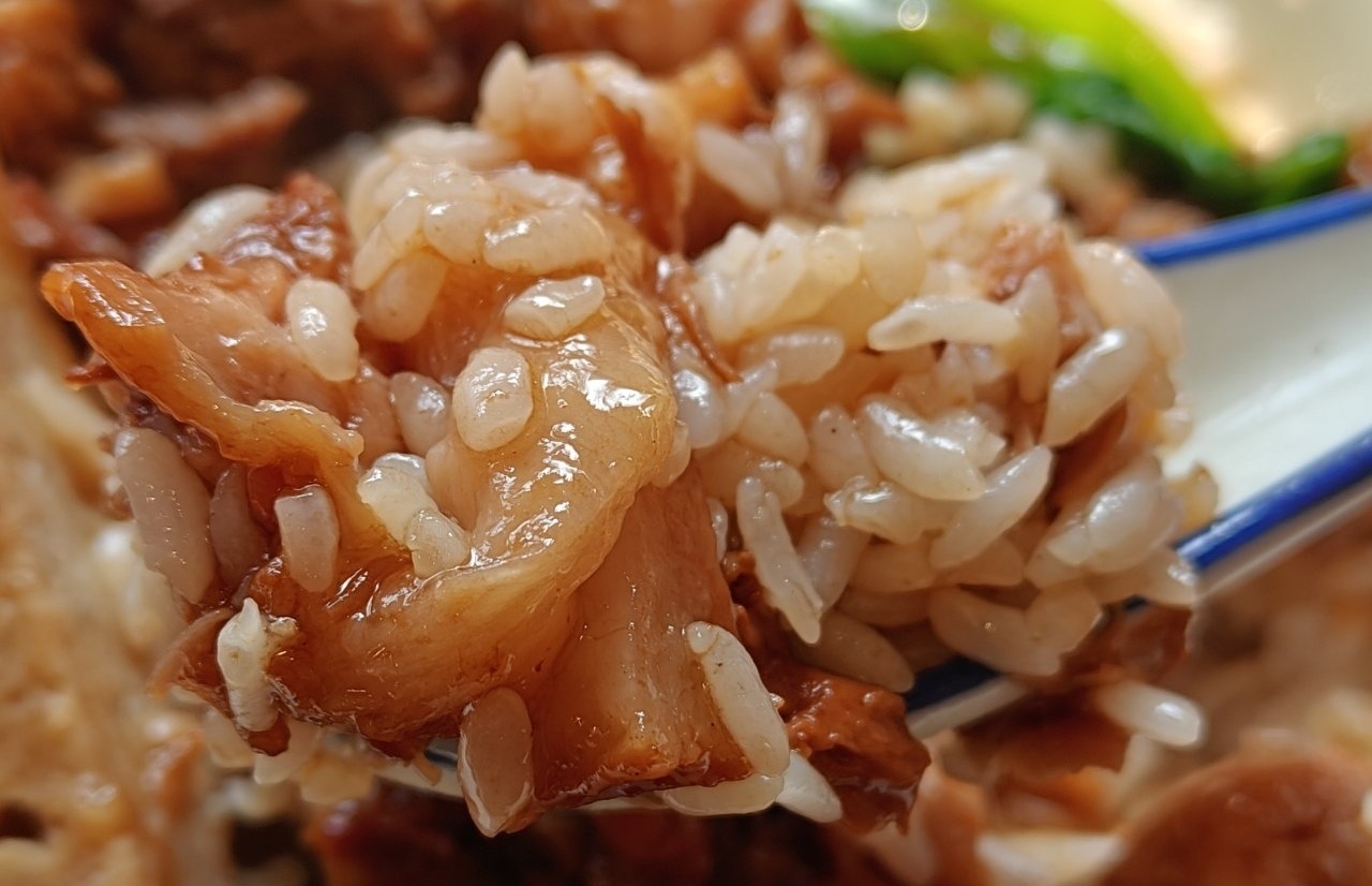 调味上卤香浓郁,各种香料配比合适,不过稍微偏咸,双椒酱鲜辣味明显,加一点很解腻。米饭本身的品质不错,煮的湿度也合适,不会太干太湿,而且饭和卤汁都可以续,能吃得很满足。