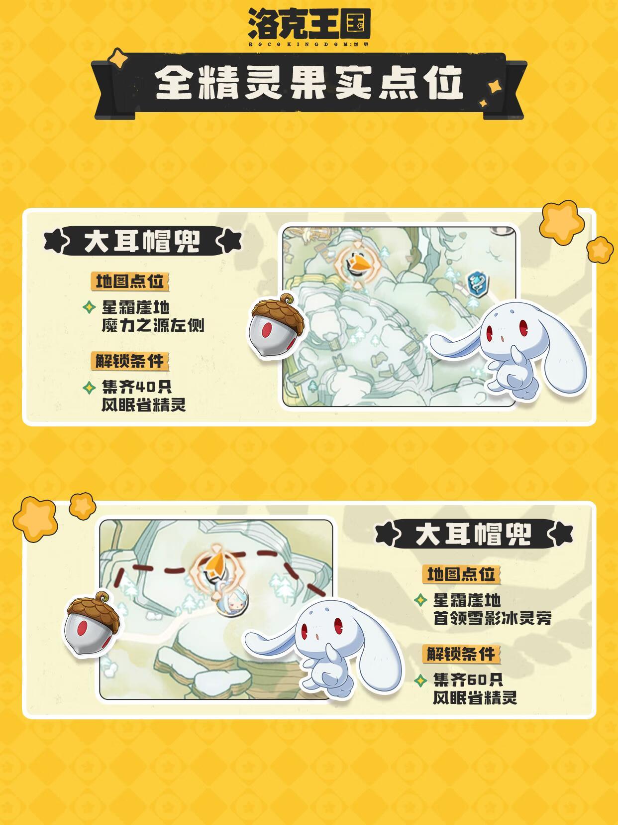 大耳帽兜(点位一):星霜崖地(魔力之源左侧),解锁条件为集齐 40 只风眼省精灵