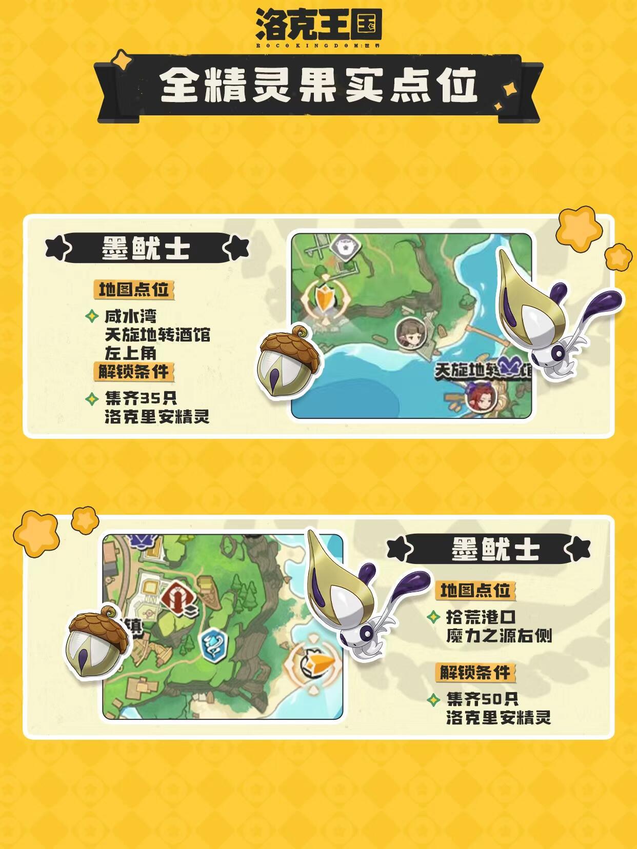 墨鱿士(点位二):拾荒港口(魔力之源右侧),解锁条件为集齐 50 只洛克里安精灵