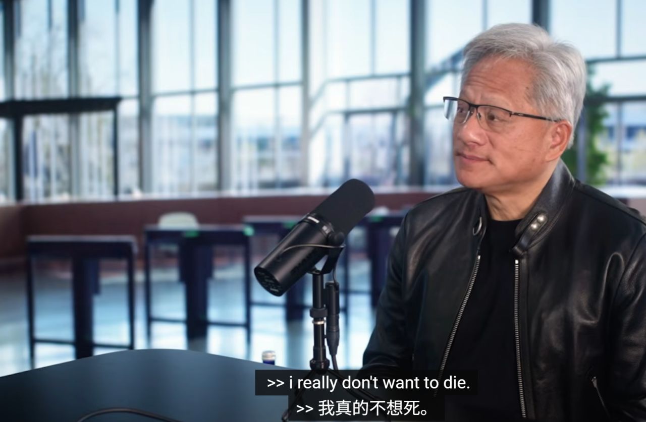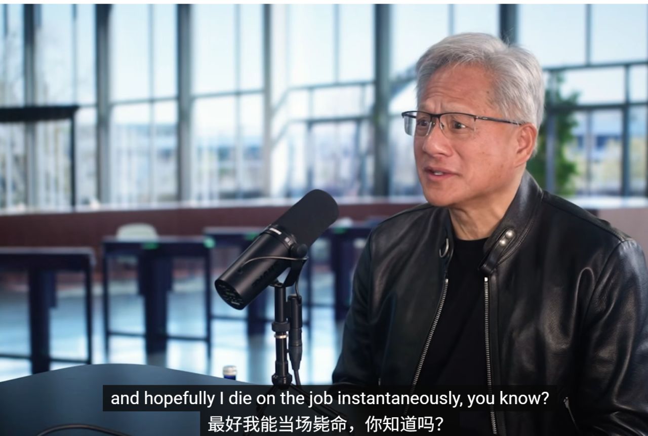 他直言自己并不想死,因为自己生活美好、家庭幸福,且身系英伟达这一全球最具影响力的科技公司,真的不想死。但如果真有的选择,那不妨突然死在工作岗位,猝死。