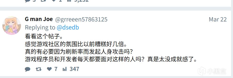 也有人称,感觉游戏社区氛围不高,仅仅因为一个帧率问题,就开始攻击,也有点太郑重其事了: