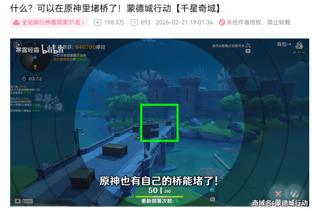 简而言之,千星奇域就是一个给玩家提供游戏制作素材与工具的平台,让玩家自由发挥,设计玩法,并供给其他玩家进行游玩。截至今日,“千星奇域”已经诞生了诸多千奇百怪的有趣玩法,除了原创剧情体验,PVP趣味战斗,你甚至还能在《原神》中玩到“搜打撤”——你说“堵桥来”,但堵的怎么是蒙德桥?
