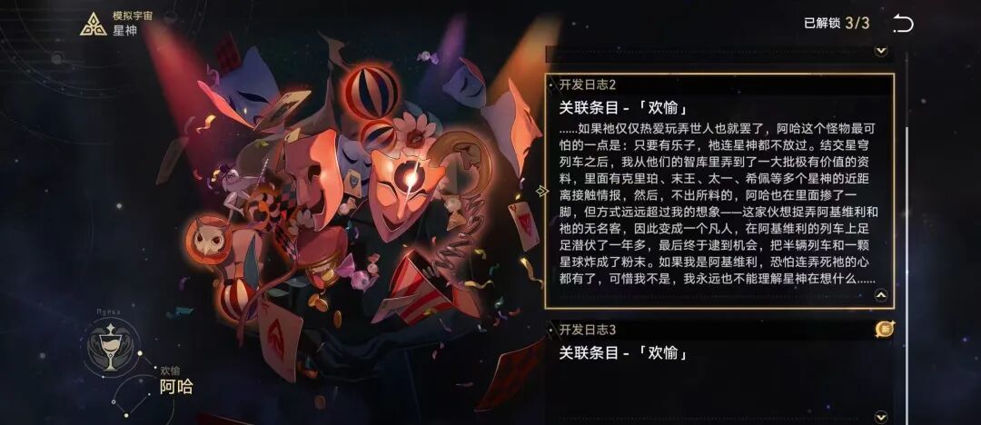以《崩坏:星穹铁道》的“模拟宇宙”玩法为例。在该玩法的过程以及结局中,都会以秘闻事件或过场剧情的形式为游戏“星神宇宙”的设定作补充,向玩家透露有关世界观核心内容的相关信息,这便是玩法作为内容载体的一种体现。