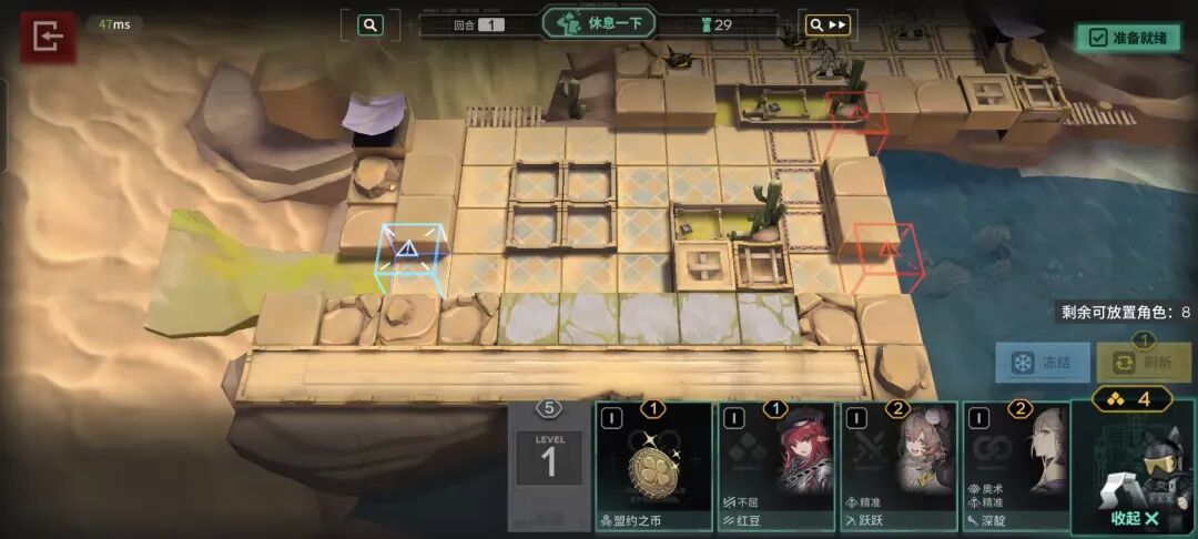 比如,下棋子的棋盘并不是一个棋子可以无条件自由活动的沙盘(特殊羁绊效果除外),而是和《明日方舟》一张寻常的地图没什么区别,玩家们仍然需要先按照《明日方舟》的逻辑部署干员到地图中。如此设计一是在站位部署上融入熟悉的环境设定,降低了玩家的理解成本,上手更简单;二则是将本家作品中干员部署的策略性也带入到了棋盘中。