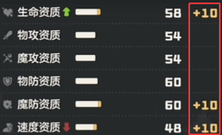 若随机3条数值为10,且加在优势资质上,那不仅是了不起的天分,还会给你一个勋章。