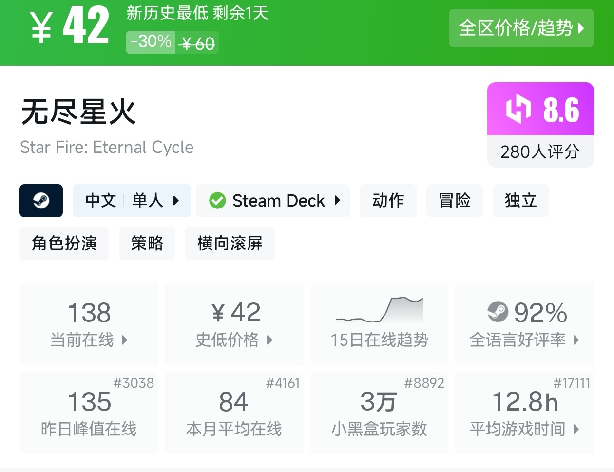 游戏迎来新史低,还更新了大剑,游戏不仅有很多漂亮的皮肤,还有很多不同属性组合的构筑深度,在不同的属性还有不同的组合。
