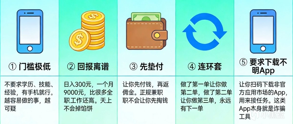 讓你掃碼下載非官方應用市場的App,用來接任務。這類App本身就是詐騙工具。