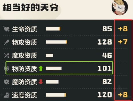 另外三种天分都不太好,假如有3条额外,但都没有加在绿箭头上,就是相当好的天分。剩下就是还不错和一般般的天分,没啥用。