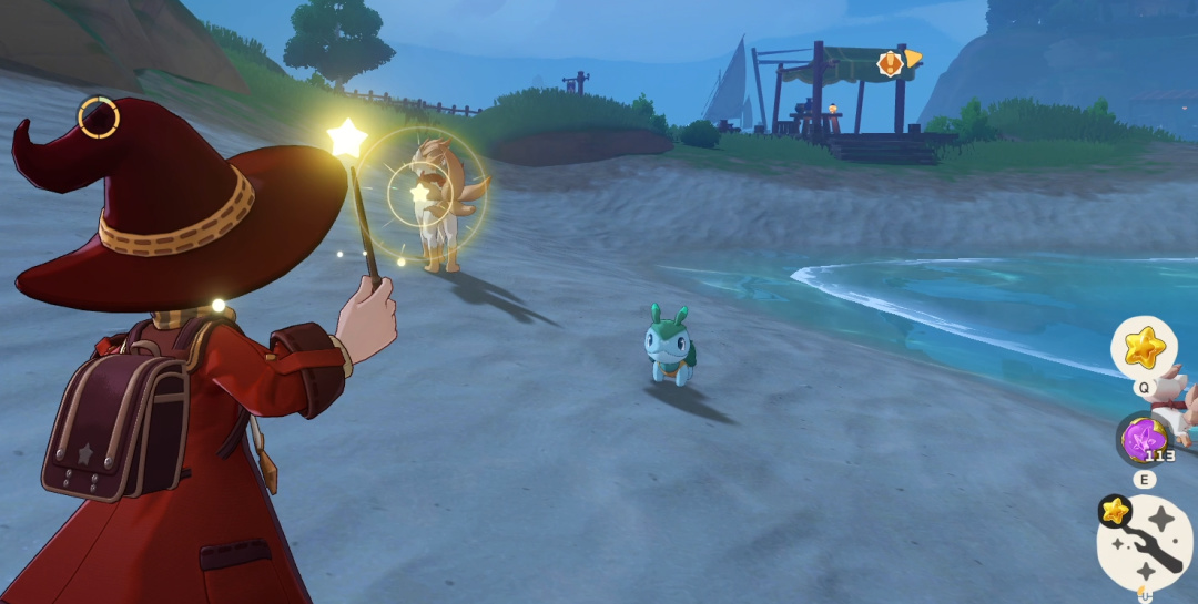 遇到等级比较高的精灵,直接扔球很难抓,你可以先用星星魔法瞄准它。