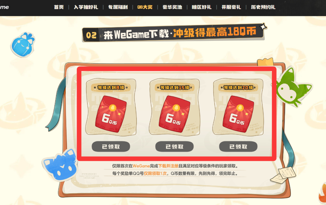 首先WeGame这里到20级就可以领18QB,不要白不要。
