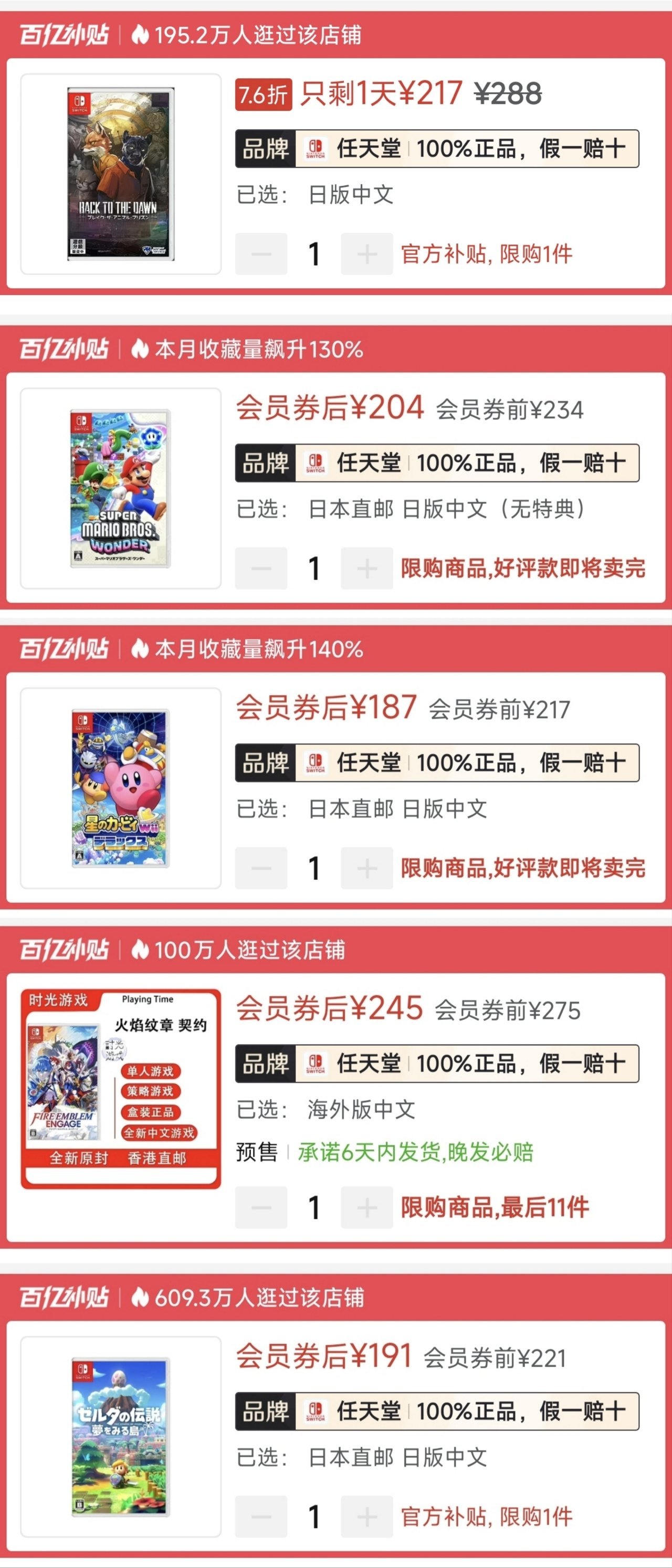 7.《马里奥惊奇》ns1版🇯🇵204|史低199