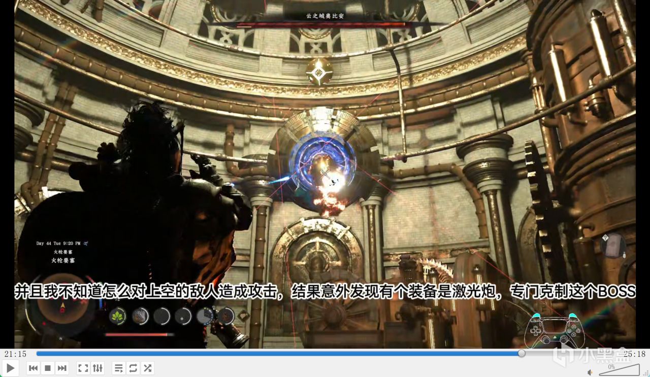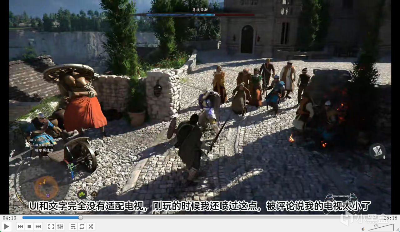 接下来的 boss 战比较简单,是给玩家适应战斗的,可打着打着经常越界,这点特别拉。UI 和文字完全没适配电视,我刚玩的时候还吐槽过,被评论说我电视太小,可我刚换的 85 寸新款电视,25 年 9 月买的,4000 尼特亮度 + 3600 个分区,观看距离两米,对 85 寸来说已经很近了,纯纯是游戏不能调 UI 的问题,不过后来我也适应了。