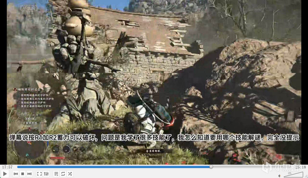 游戏没提示怎么摧毁罐子,到了第九章,难道图文攻略没更新?弹幕说按 R1+R2 蓄力可以破坏,可我学了很多技能,根本不知道要用哪个,解谜完全没提示,引导性基本为 0,这是我觉得特别恶心的点,很多人都会卡关,必须看攻略。