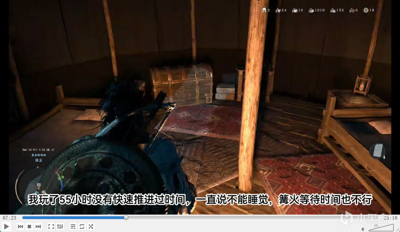 我玩了 55 小时,从来没快速推进过时间,也不能睡觉,复活等待时间也不行,一直显示疲劳值满的,感觉是 bug,试了很多次都不能睡觉,特别难受,因为夜晚太黑了,不方便探索。