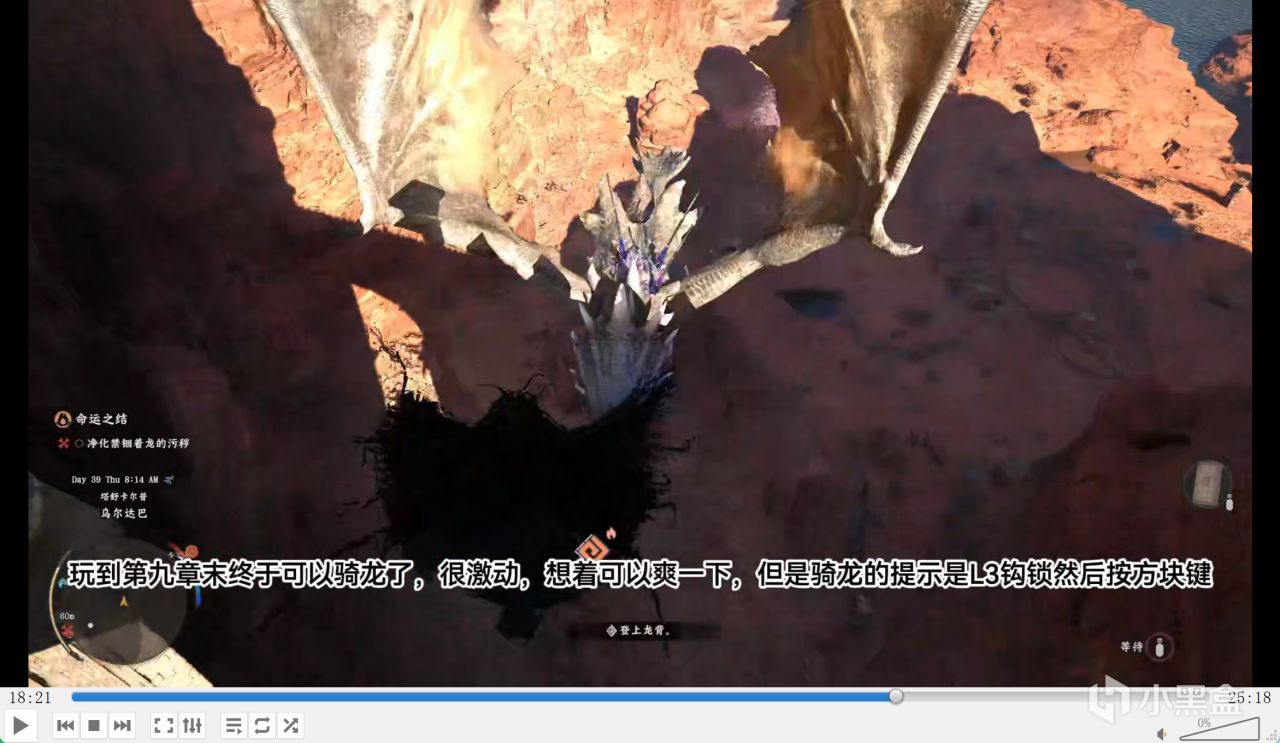 推镜子让光线折射到塔里面也很复杂,镜子多还推得慢,试错成本太高,找了很久才找到攻略勉强过关。玩到第九章末,终于能骑龙了,特别激动想爽一下,可骑龙提示是 L3 勾锁 + 方块键,我试了 20 分钟都骑不上,破防了才发现骑龙技能没加点,我以为主线技能会自带学习,结果要手动加点,引导性垃圾到极致。