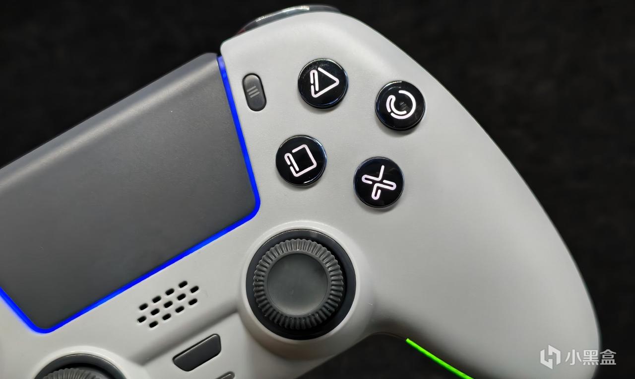从上图中可以看到配件里有个圆盘十字键帽,而这款手柄的十字键盘面的确是可以更换的,其采用的还是轻触开关(终于不是导电胶了,泪目.jpg),虽然用起来不容易串键,但其触发力度属实不小,键程要比DS5小一些,所以实际使用时会感觉手感偏硬。
