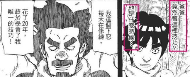 再比方说跟凯传授自己都教育理念时被路过的木叶忍者讥讽“你还在跟小孩子玩修行游戏”、“你这个万年下忍”……