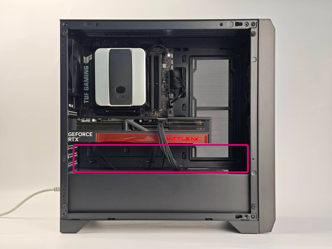如果大机箱装MATX小主板,下面会空出一段不太协调,就像小孩子穿大人衣服一样: