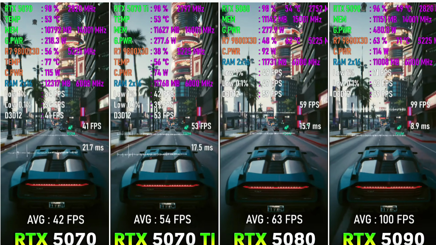 基本上5080能玩的,5070TI效果也差不多,5070TI玩不了,那5080也没辙: