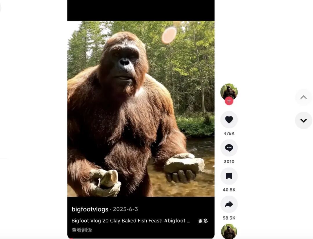 我看到 tiktok 上面有個 AI 生成大猩猩擬人的喫播,