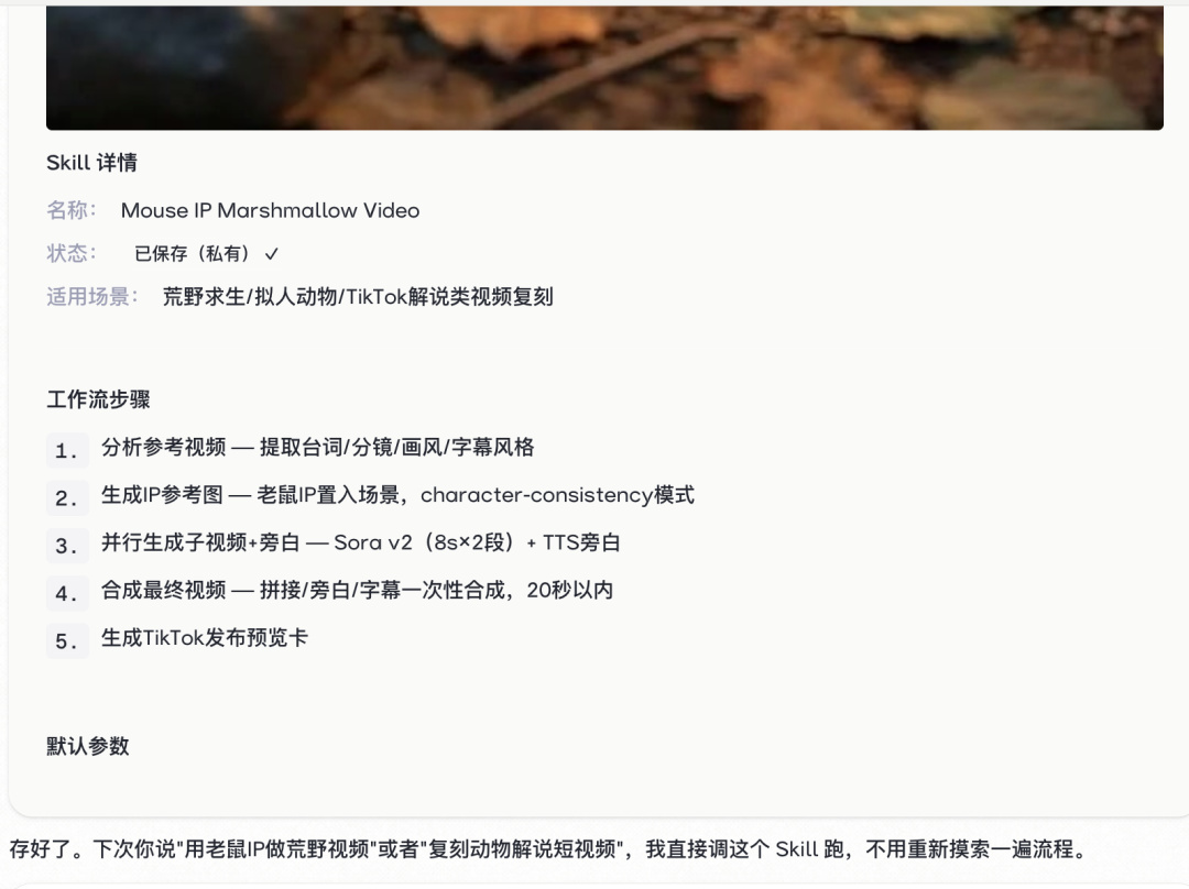 這還沒完!可以把整個流程直接保存爲 Skill!