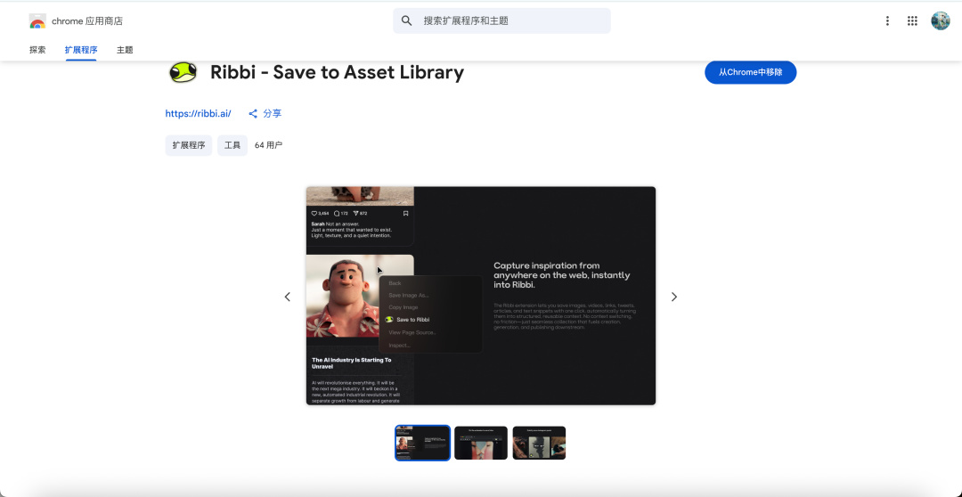 保存即反推提示詞,然後Ribbi可以學會你的審美品味和創作流程,爲此他們還直接搞了一個 Google 插件,體驗下來真的很爽。