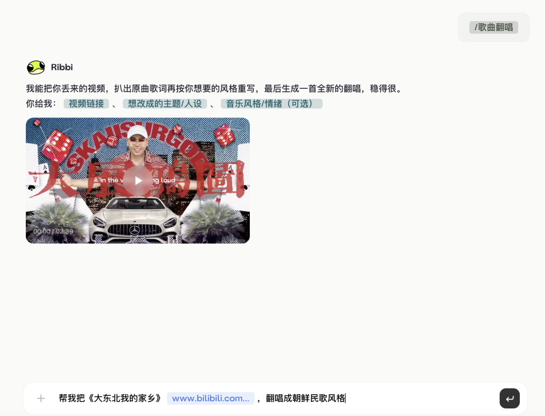 (這裏也有一段音頻,就是翻唱的,可惜也放不了音頻,接的是API,效果參考 Suno)