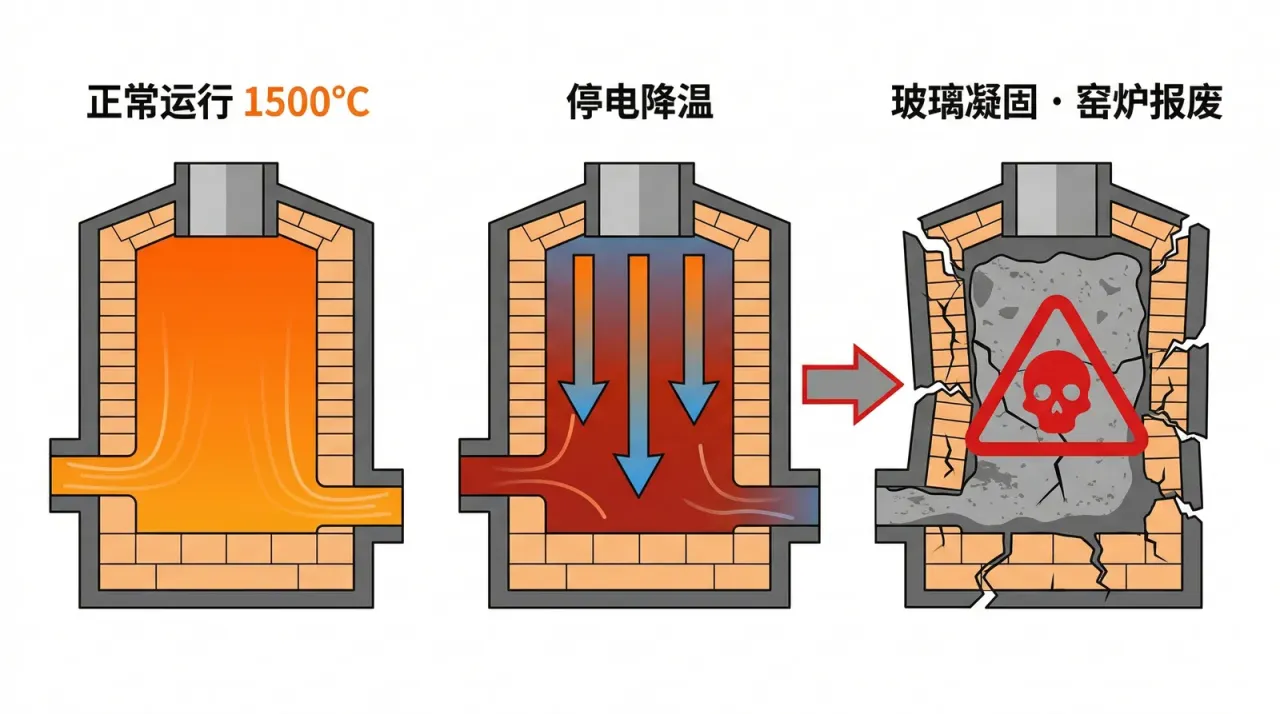 说白了(我为什么要说说白了),停一次电,不是“损失一批产品”,而是“整座窑炉报废”。一座熔窑的造价动辄几千万甚至上亿💸,设计寿命大概五到八年,正常情况下会连续运行整个寿命周期才进行一次大修。