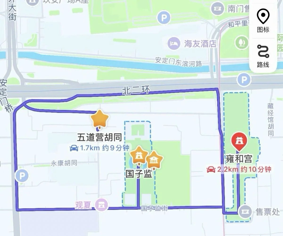 路线1:雍和宫—国子监—五道营胡同(文脉书香线)