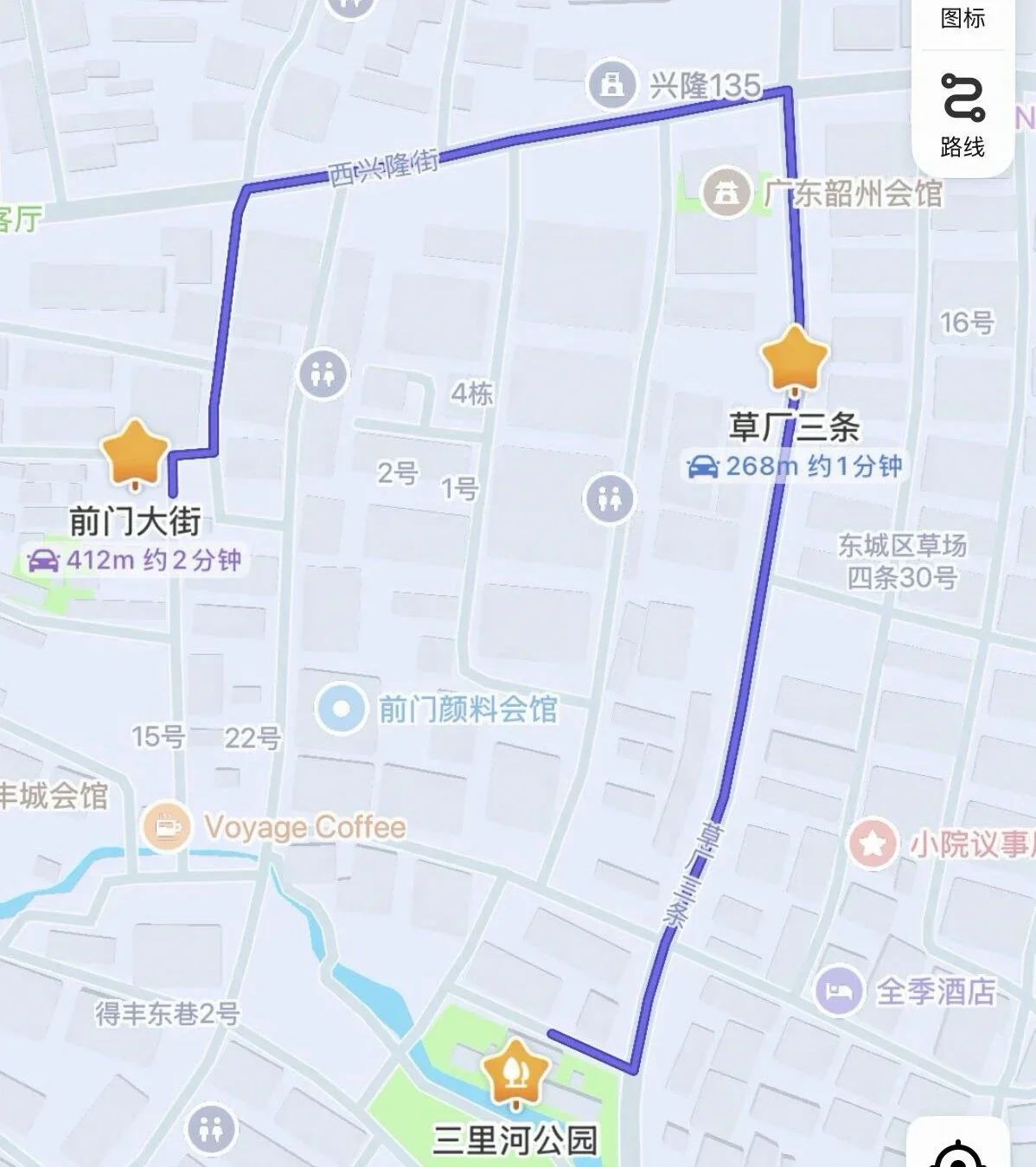 路线3:三里河公园—草厂三条—前门(水岸江南线)