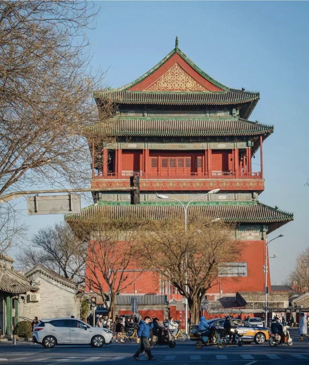1. 钟鼓楼:钟鼓楼,始建于 1272 年元代,经明清重建定型。鼓楼砖木立 25 面更鼓,钟楼砖石悬 63 吨永乐铜钟,是元明清三代都城报时中心。如今属于北京中轴线的北端,登鼓楼可俯瞰整片胡同与中轴线全景。