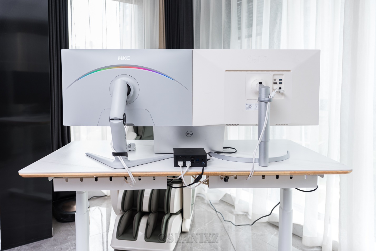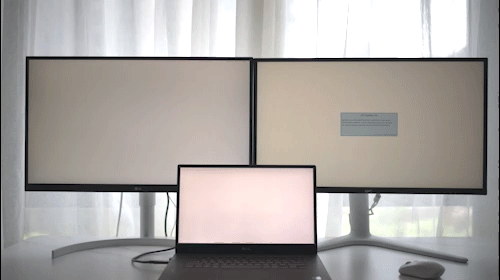 实测如图,使用笔记本外接两台显示器来对比响应速度。