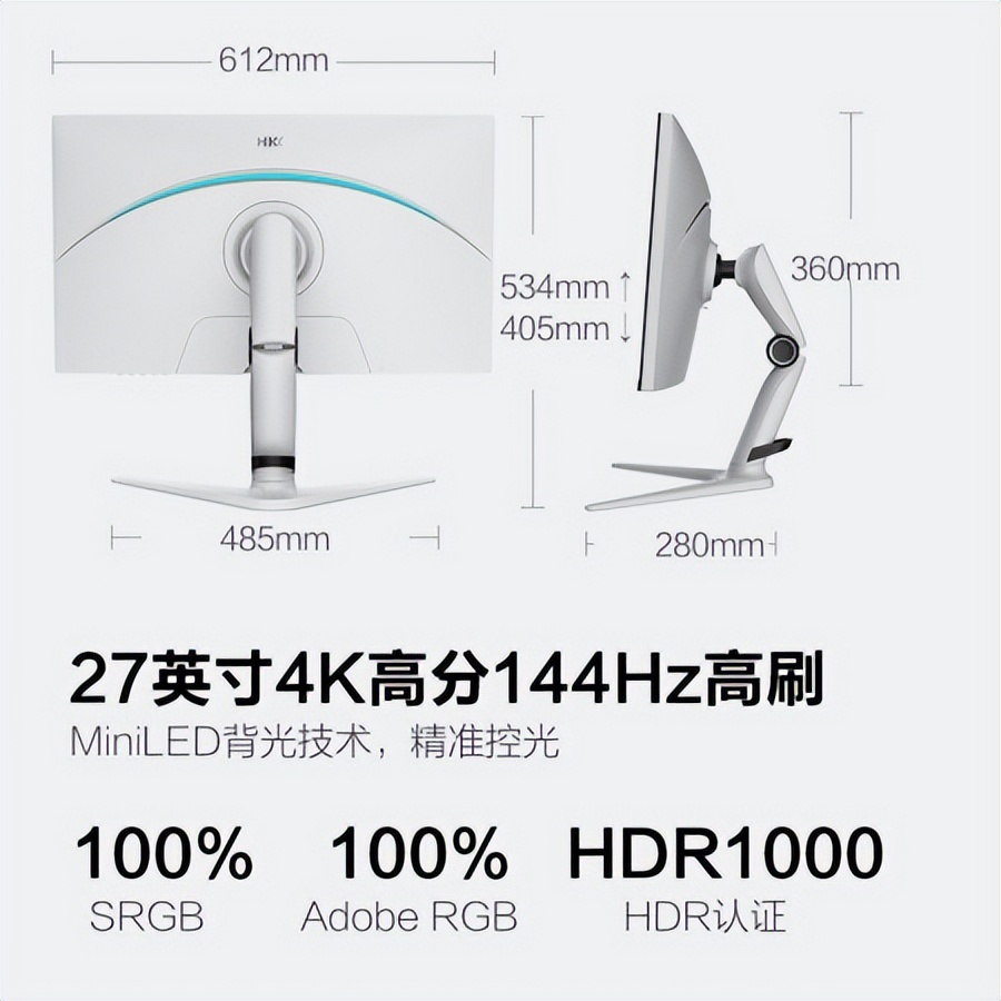 HKC PG271Q支持HDR1000,画面游戏画面效果也有一定提升。