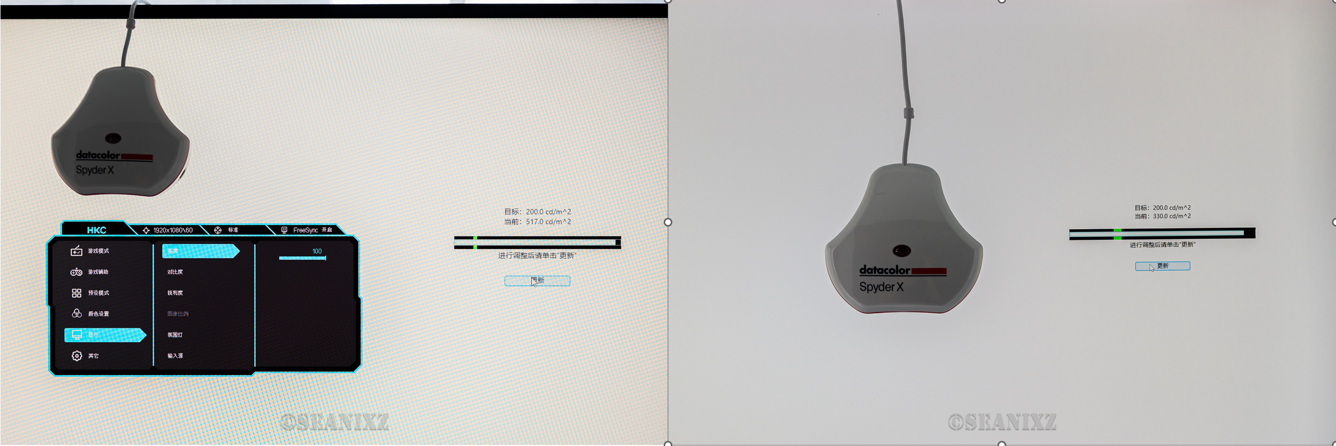 HKC PG271Q 100%亮度时实测亮度为517cd/m²,LG 27UL850为330 cd/m²,差值接近300,画面产生差距也是正常现象了。