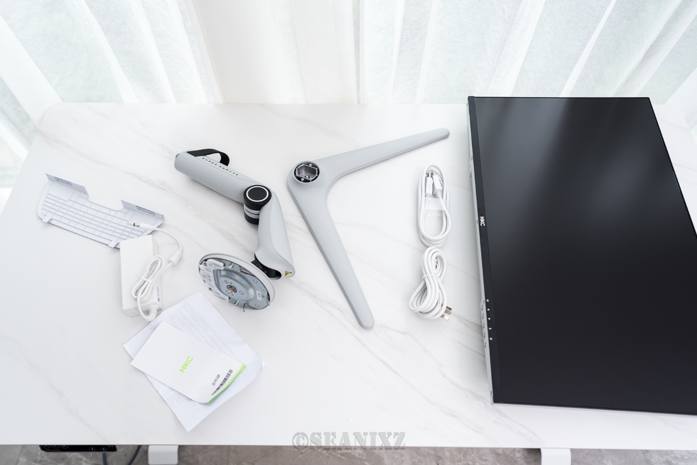 装箱配置:底座、支撑臂、显示器主体、电源适配器、DP线、说明书等。