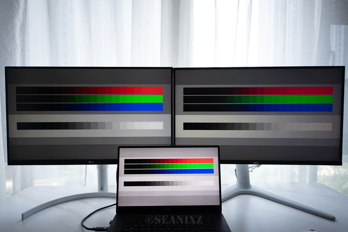我来对比一下我现有的设计屏LG 27UL850显示器和 DELL XPS 15 9570笔记本自带显示器。