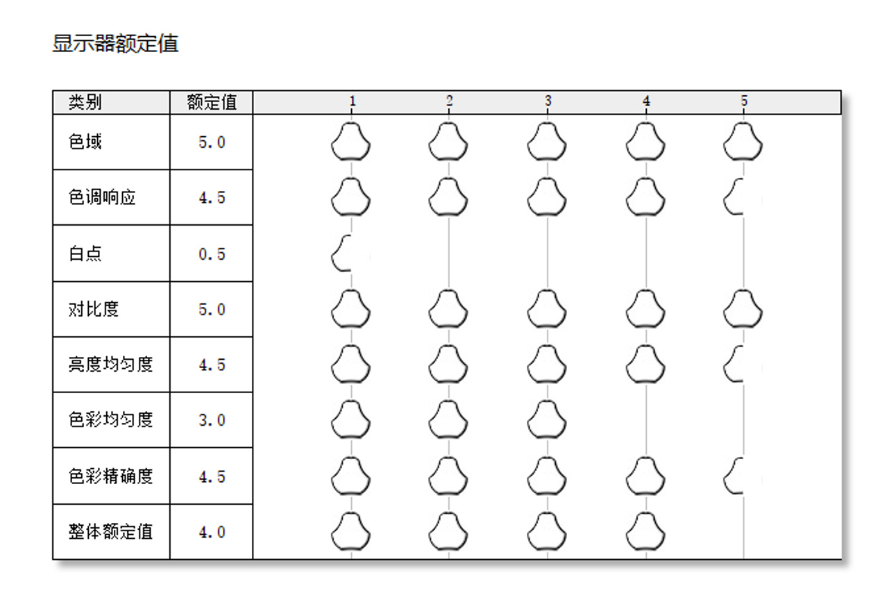 在SpyderX的总体评分中平均4.0分,色域、色调响应、对比度、亮度均匀度、色彩精度等几乎都是满分。